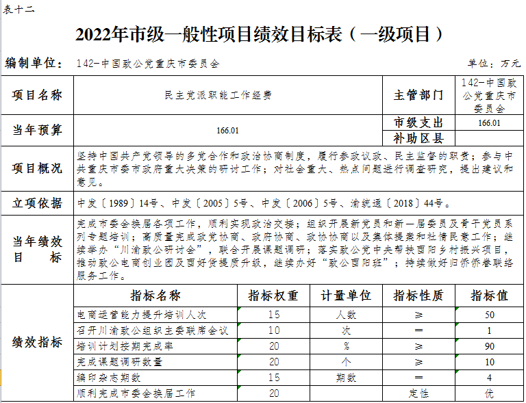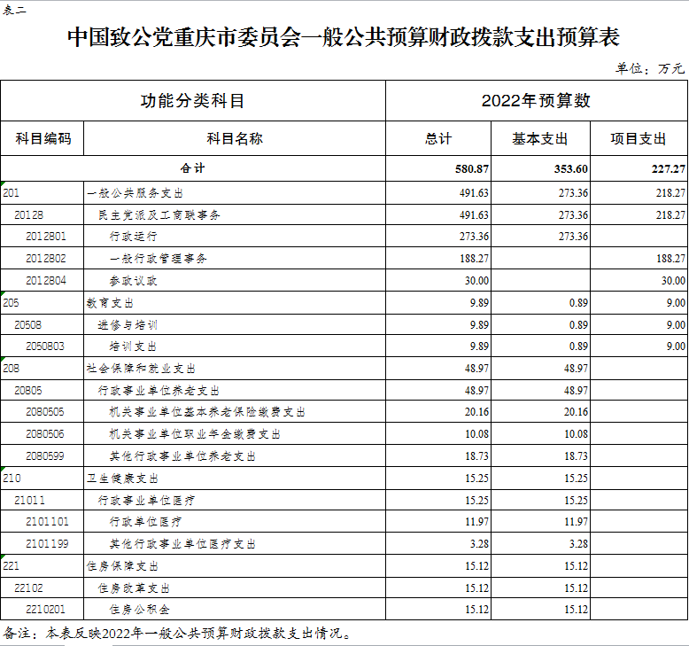 中國致公黨重慶市委員會2022年部門預算情況說明